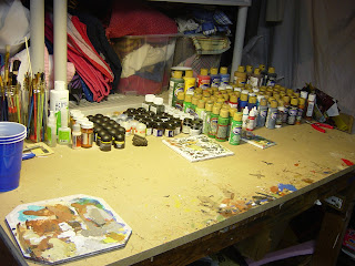 Last night I spent my "painting time" just organizing my bench. This is what it looked like at the start of my hour.